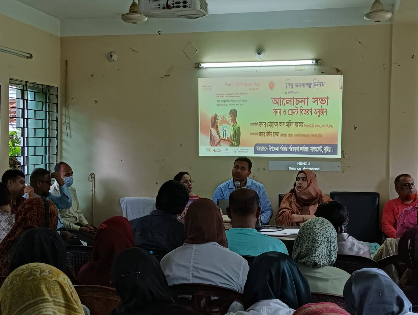 ১৪ জুলাই ২০২৫ বিশ্ব জনসংখ্যা দিবস-২০২৫ উদযাপন উপলক্ষ্যে আলোচনা সভা, সনদ ও ক্রেস্ট বিতরণ অনুষ্ঠানে প্রধান অতিথি হিসেবে উপস্থিত ছিলেন সম্মানিত উপজেলা নির্বাহী অফিসাr জনাব আল আমিন সরকার, বিশেষ অতিথি হিসেবে উপস্থিত ছিলেন এক্সিকিউটিভ ম্যাজিস্ট্রেট ও সহকারী কমিশনার(ভূমি) জনাব মিল্টন চাকমা। উপস্থিত ছিলেন উপজেলা পরিবার পরিকল্পনা কর্মকর্তা জনাব জাকারিয়া, এমওএমসিএইচএফপি ডা. লতিফা নাসরীন ও ডা.ফাতেমা তুজ জোহরা। উপস্থিত ছিলেন নাঙ্গলকোট উপজেলা পরিবার পরিকল্পনা অফিসের উপসহকারী কমিউনিটি মেডিকেল অফিসার,টিএফপিএ,এফপিআই,এফডভ্লিওভি, ফার্মাসিস্ট, এফডব্লিওসহ সকল স্টাফ।